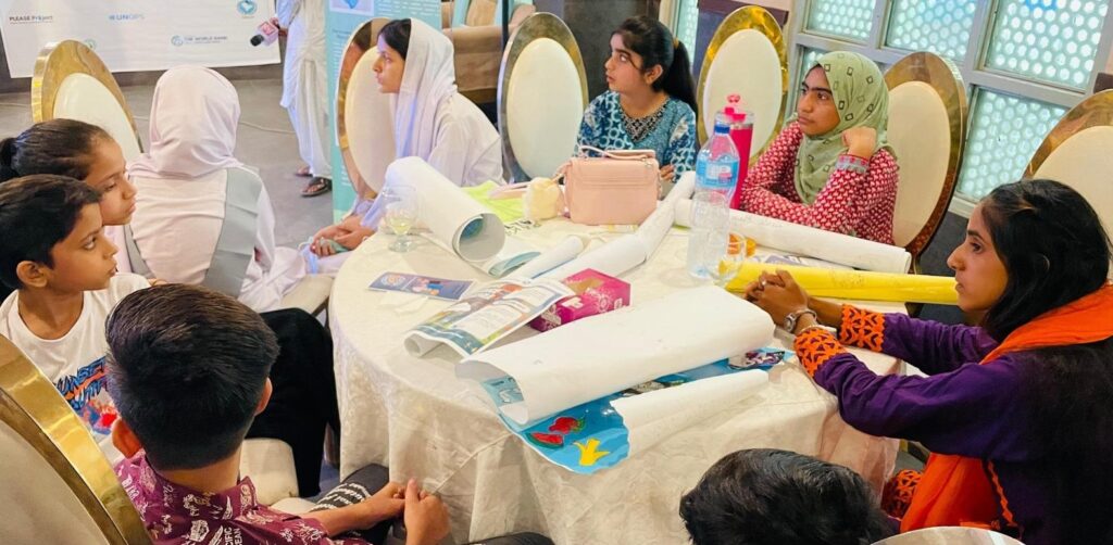 Local Action Groups (LAGs) played a vital role by sharing their experiences of awareness sessions in schools, hospitals, and rural areas. Schools engaged students in a poster competition against plastic pollution, while hospital staff and doctors provided valuable feedback on the project’s impact on health and environmental safety. The seminar also highlighted inclusive employment through the story of Saeeda, from the informal sector, now working as a waster sorter at the PE recycling plant.