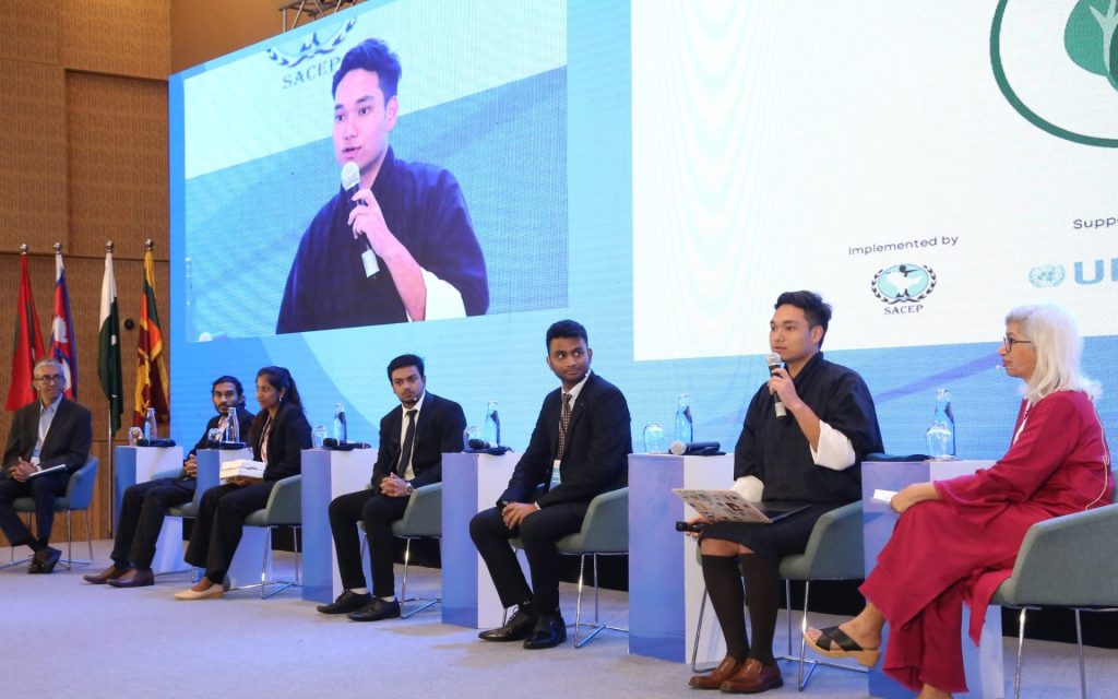 Ms. Farhina Ahmed (Secretary of the Ministry of Environment, Forest and Climate Change of Bangladesh), Mr. Sachin Limbu (Chief Environment Officer at the Ministry of Energy and Natural Resources, Bhutan), Mr. Pravir Pandey (Additional Secretary and Financial Advisor at the Ministry of Environment, Forest and Climate Change, India), Honorable Ahmed Nizam (Deputy Minister at the Ministry of Tourism and Environment, Maldives), Mr. Shailesh Kumar Jha ( Joint Secretary at the Department of Environment, Ministry of Forests and Environment of Nepal), Honourable Dr. Shezra Mansab Ali Kharal (Minister of State at the Ministry of Climate Change and Environmental Coordination, Pakistan), Mrs. R. H. M. P. Abeykoon (Additional Secretary for Environment Policy and Planning at the Ministry of Environment, Sri Lanka), Nalaka Gunawardene (Moderator)